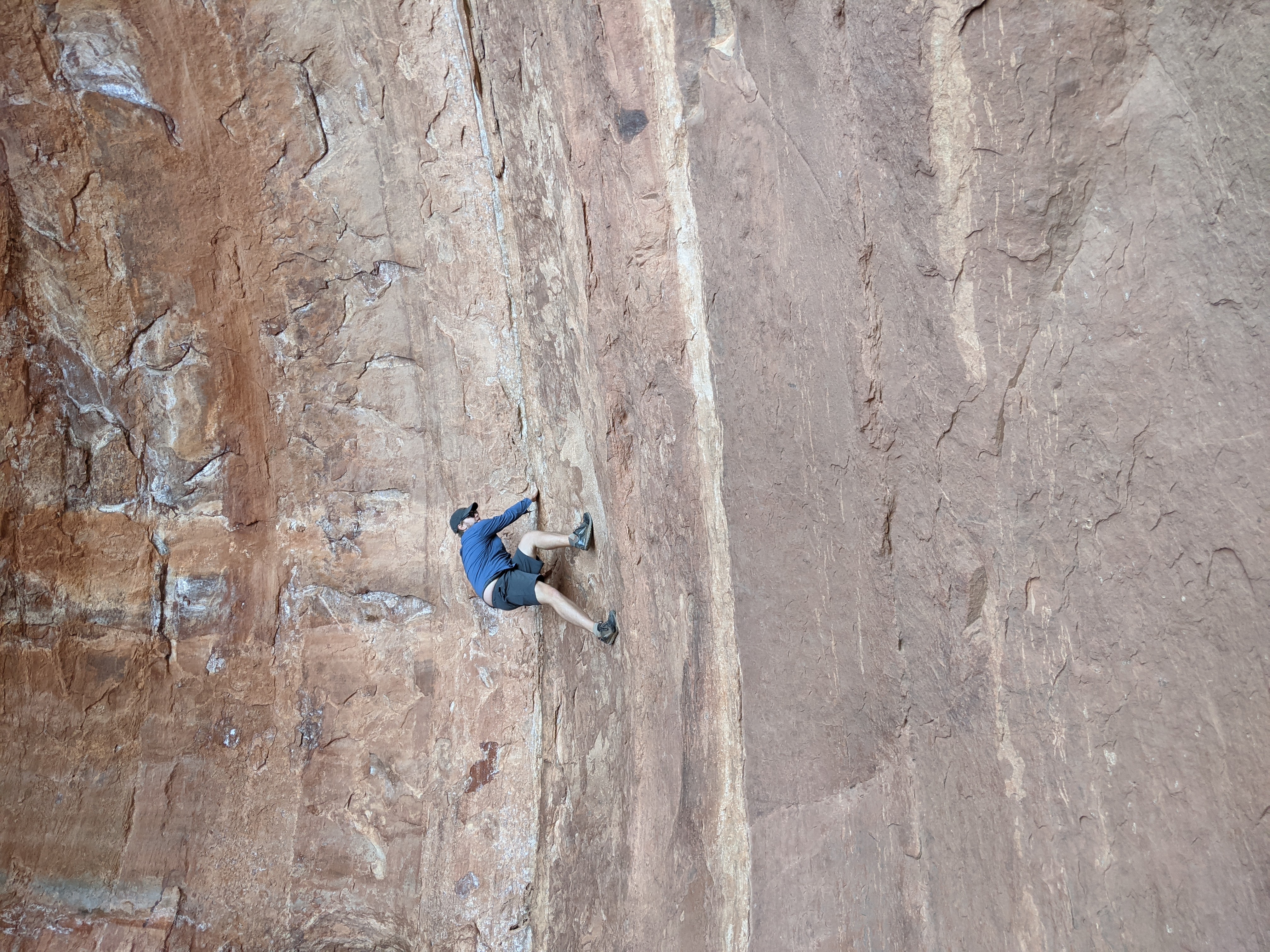As I sat in the hole, I had the pleasure of watching Ryan’s awkward struggle up the wall as he made his way to join me. He now learned how challenging it was to climb this wall.