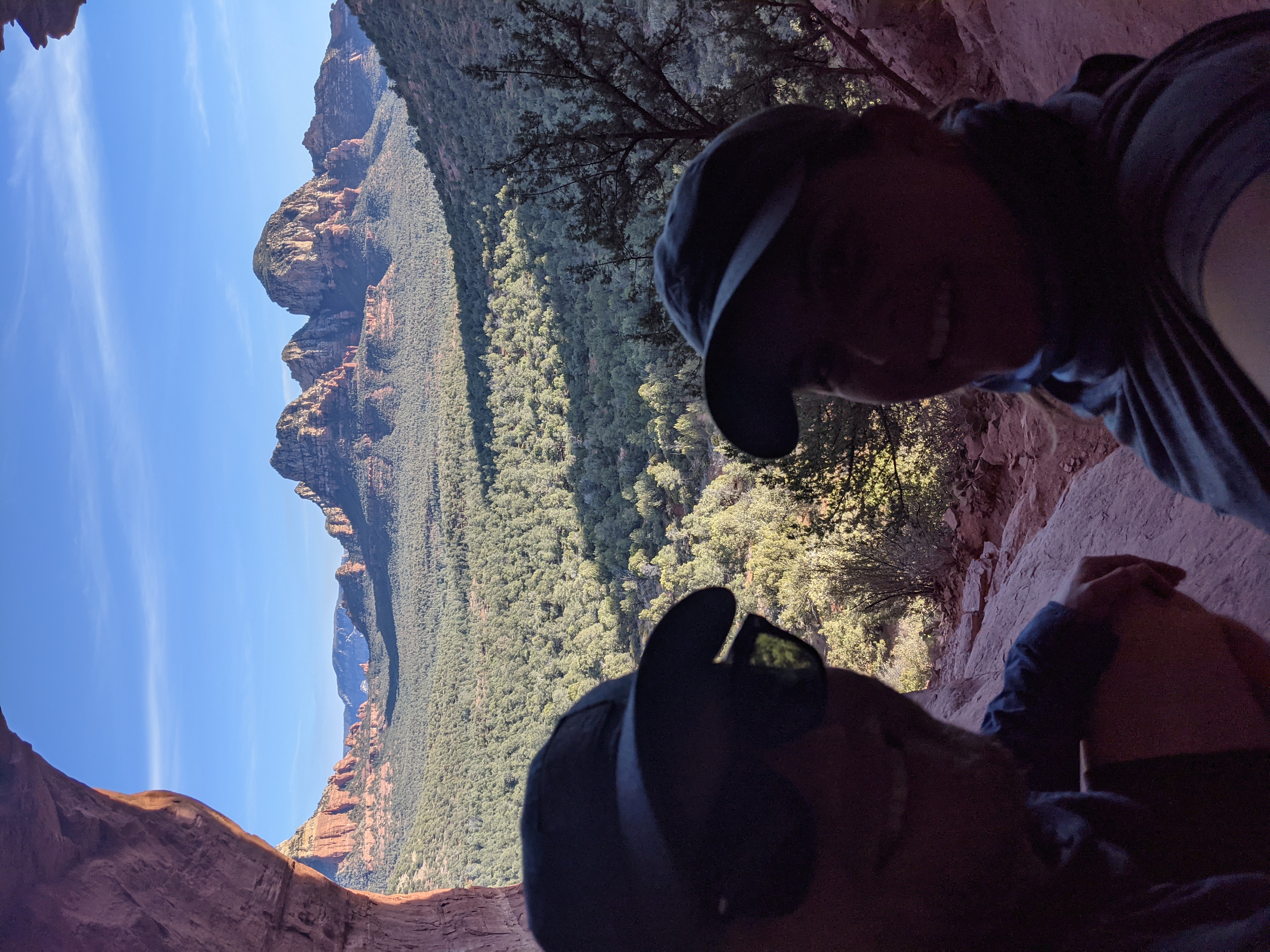Then Ryan came down. He was just as awkward as I was with it, but he was able to descend the wall at a faster pace. We sat at the bottom of the cave for a bit before heading back to the truck. While we were taking selfies, Buddha came running over and jumped into the pictures with us. He is a very friendly and energetic dog. He was making us want a dog of our own.